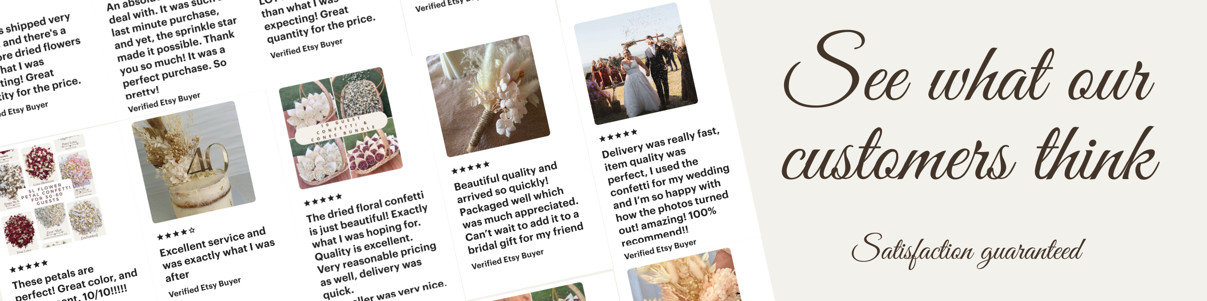 I ordered dried petals for my wedding in April. They arrived very quickly and were exactly like they were on the shop. The product was very affordable for the amount I received. As part of the purchase, I also got a free save the date document. I recommend this seller!