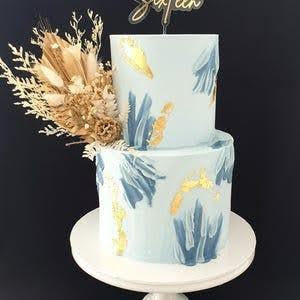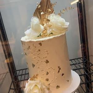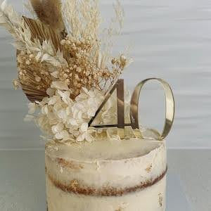 Dried Flower Bouquet Cake Topper - Gold and White in 4 Palm Colours