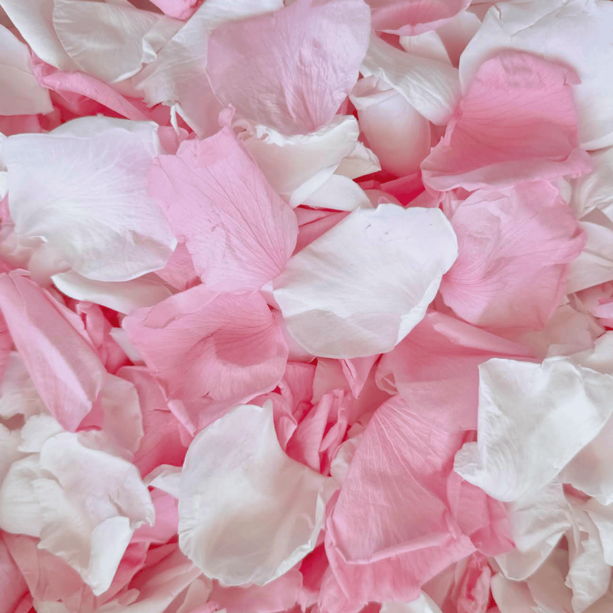 Luxurious pink and white real rose petals for that perfect wedding aisle flower girl basket toss or for an elegant confetti photo shot of the Bride and Groom ceremony exit. Adorn your wedding aisle with beauty and elegance for that special entrance.