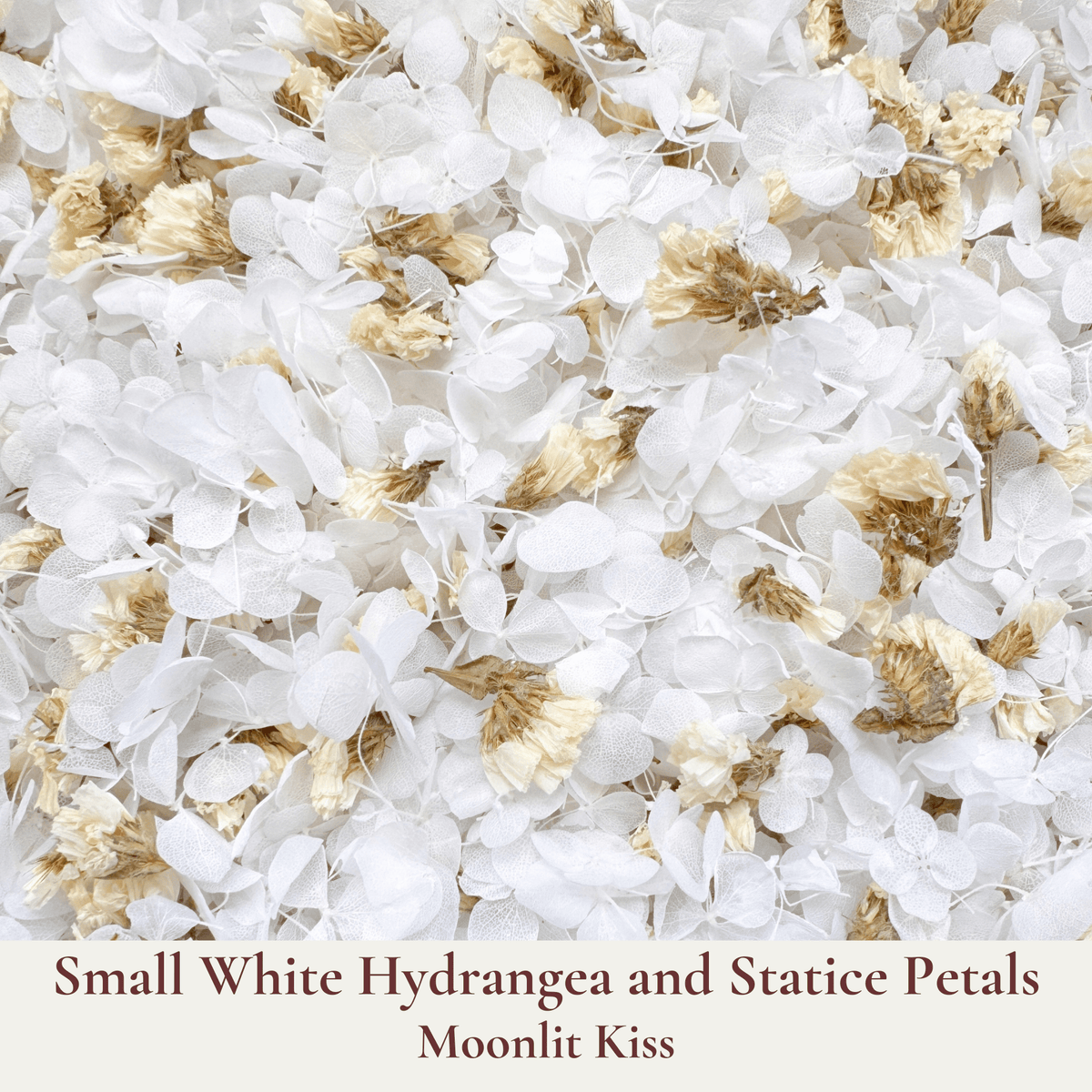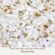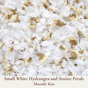 Eco-friendly and biodegradable, our hydrangea and statice flower confetti ensures a beautiful, guilt-free celebration that respects nature. Let your love bloom with every petal as you celebrate your magical moment.