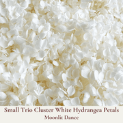 Add a touch of elegance and romance to your special day with our small white dainty trio clusters of hydrangea petals. These small cluster white hydrangea confetti petals will shower the Bride and Groom drifting down like dainty white butterfies.